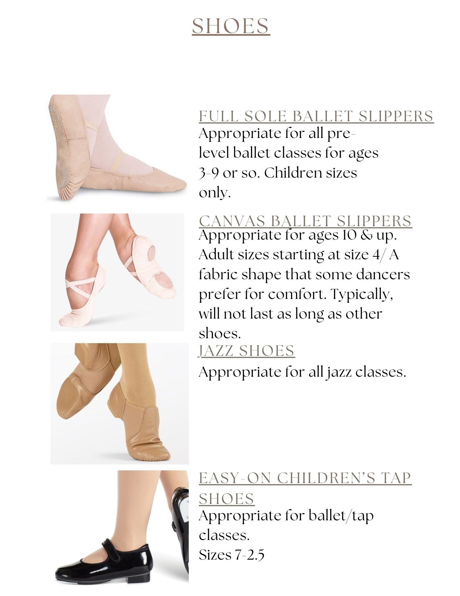 Wearing the appropriate dance wear helps to create the proper mindset for learning and enables the teacher to see proper execution of movements. Class attire is color coded for beginning to intermediate levels. All required dance wear is available for purchase is located at our Dancewear store, Tilly’s Dancewear, onsite & online.